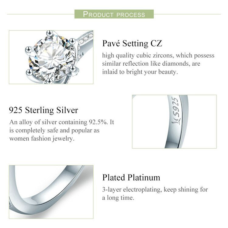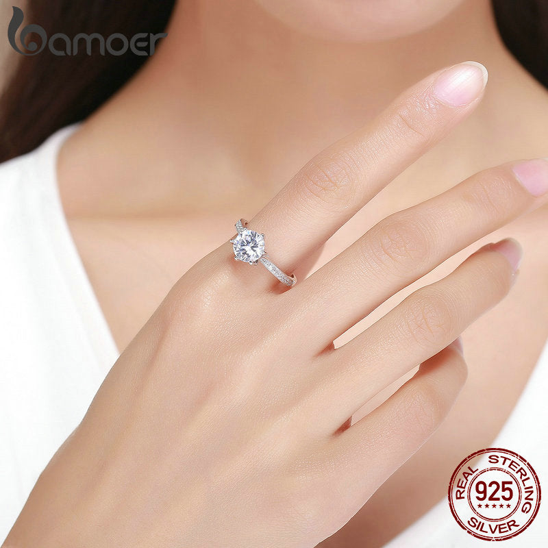 BAMOER High Quality 925 Sterling Silver Wedding Ring Princess Square CZ Finger Rings for Women Silver Engagement Jewelry SCR342